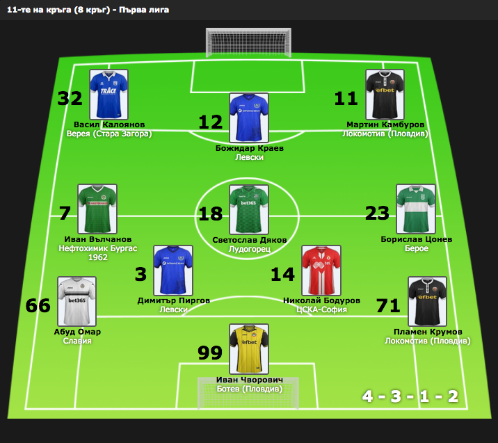 - Мартин Камбуров (Локомотив Пловдив) - II, V, XIV, VI (II), VIII (II)
