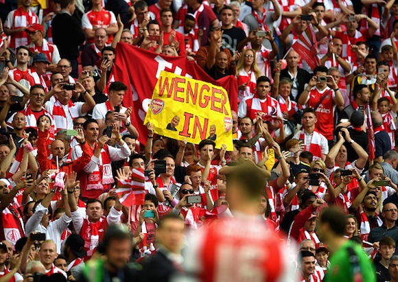 Фенове показват подкрепата си за Арсен Венгер по време на финала на ФА Къп между Арсенал и Челси