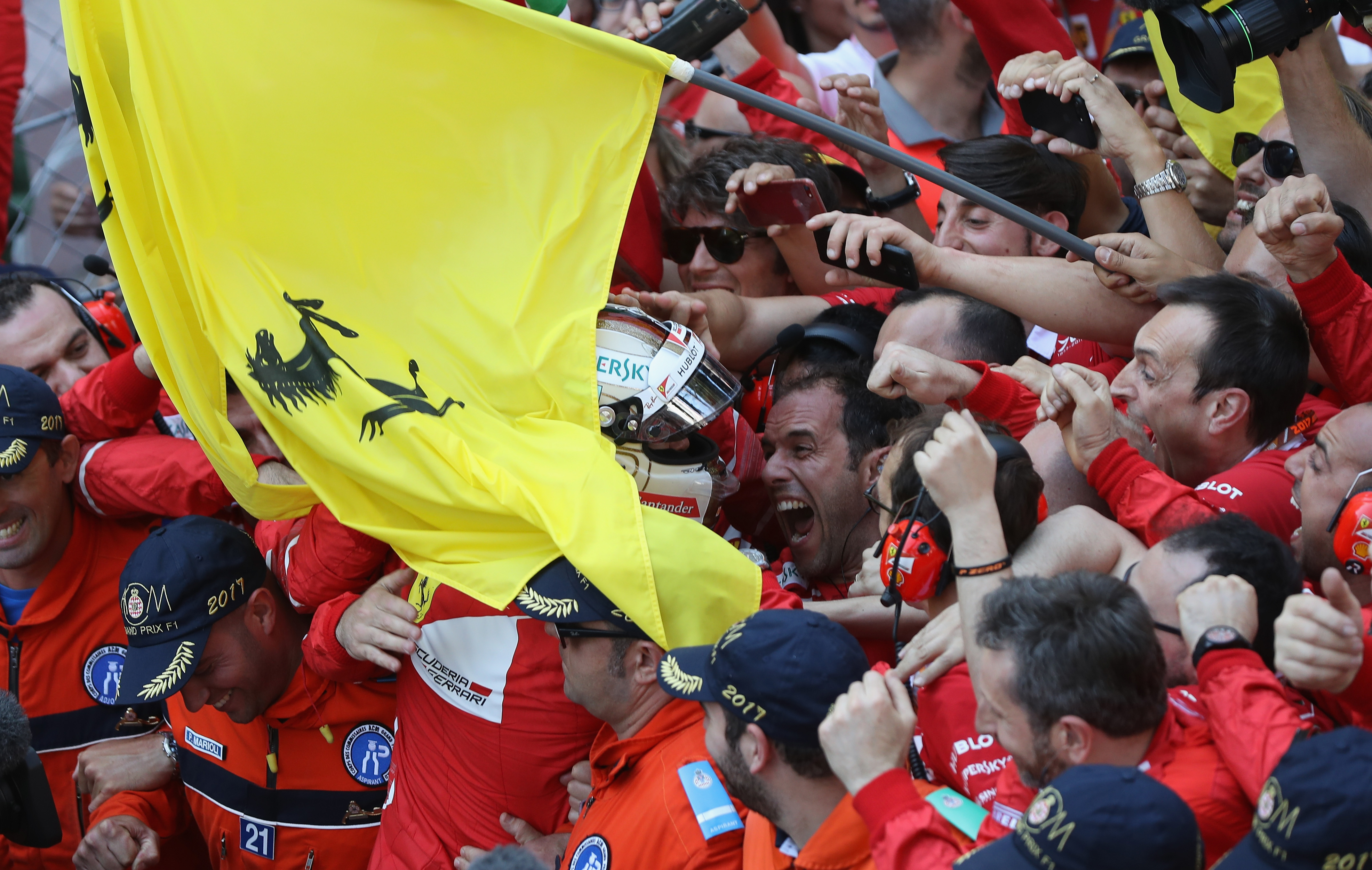 Себастиан Фетел донесе първата победа на Ферари в Монте Карло от 2001 година, когато Михаел Шумахер победи съотборника си Рубенс Баричело, а двойният им подиум е първият такъв от Гран При на Германия през 2010-а. Победата изстреля Фетел на 25 точки пред пилота на Мерцедес Люис Хамилтън.
