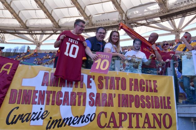 Второто сигурно нещо от това прощаване бе изразено от тифозите в Курва Суд: „Тоти е Рома”. И ако имаше нужда тези хора да изразят себе си, те изпълниха отлично своя дълг. Написаха го, викаха го, показваха го.