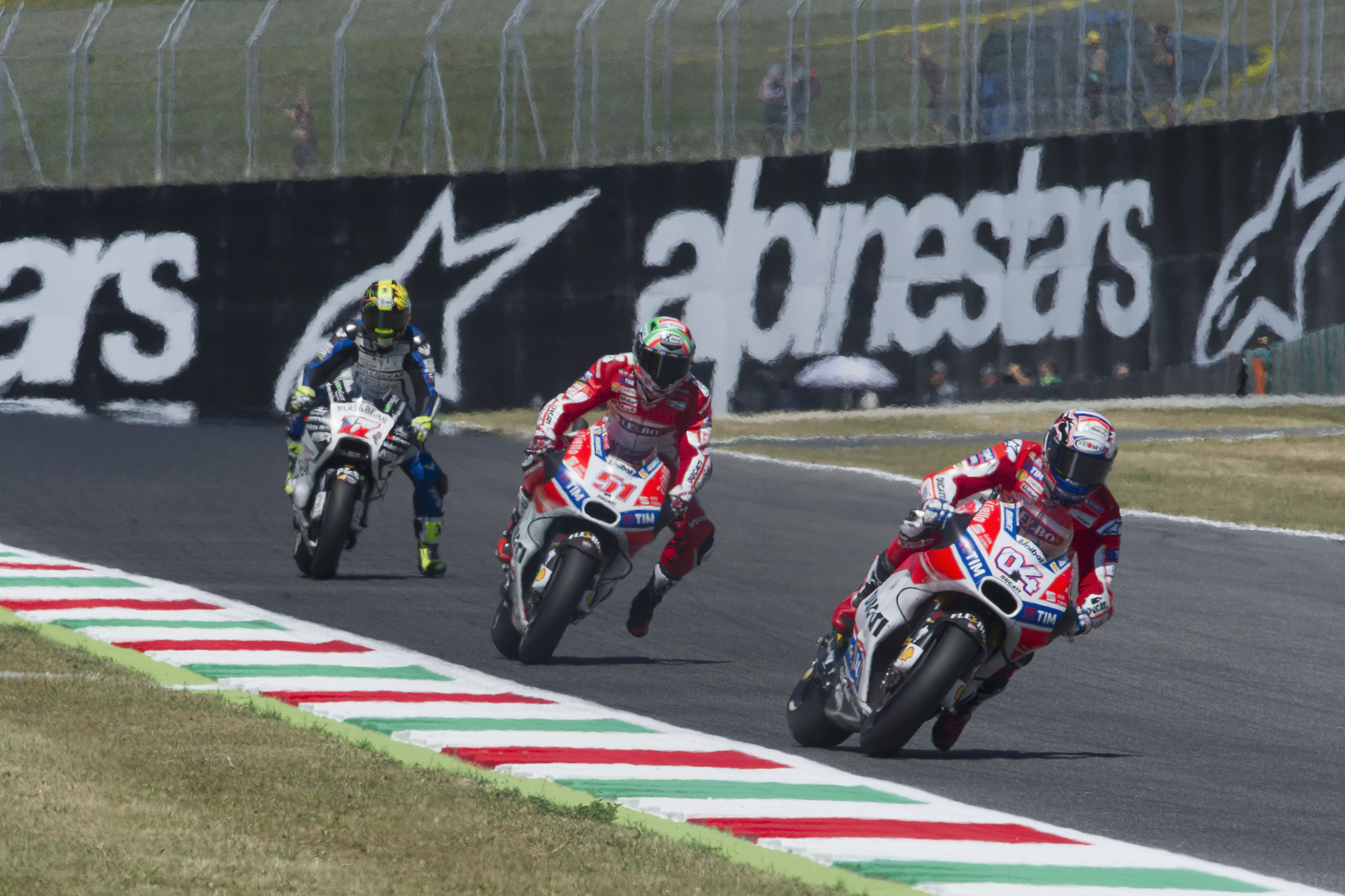 Топ 3 допълва втори италианец в лицето на Андреа Довициозо от тима на Ducati, които се радват на силен уикенд. С уайллдкард Микеле Пиро също участва на домашното си състезание и на стартовата решетка утре ще заеме четвъртата позиция, с което топ 4 е изпълнен с трима италианци.