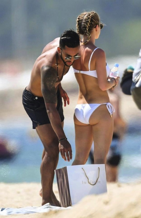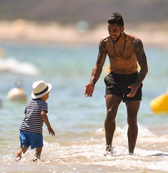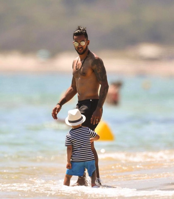 Бързоногият полузащитник бе сниман от папараци, докато си играе с Финли, по-големия от неговите двама сина, на френския бряг. Малко по-късно към тях се присъедини и зашеметяваща му съпруга, която показа изваяно тяло в оскъден бял бански. Двойката се сдоби с втория си наследник - Арло, в края на миналата година.
