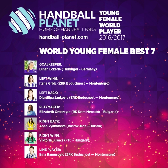 В идеалният отбор са също така Дина Екерле (най-добър вратар, Тюрингер, Германия), Итана Гърбич (най-добро ляво крило, ЗРК Будучност, Черна гора), Джурджина Яукович (най-добър ляв гард, ЗРК Будучност, Черна гора), Анна Вяхирева (най-добър десен гард, Ростов-Дон, Русия), Виктория Лукач (най-добро дясно крило, ФТС, Унгария) и Ема Рамусович (най-добър пивот, ЗРК Будучност, Черна гора).