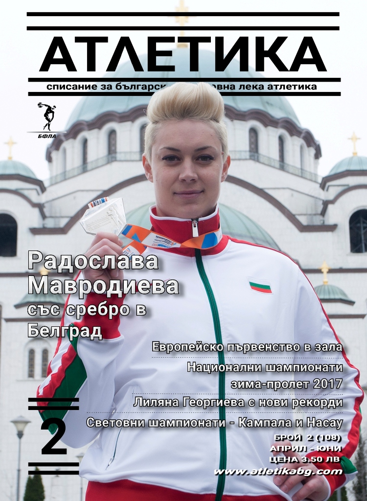 В началото на седмицата излезе брой 108 на списание “Атлетика”. Радослава Мавродиева е на корицата на списанието след като спечели сребърен медал в тласкането на гюле с личен рекорд на европейското първенство в зала в Белград през март. В обширно интервю за списанието Радослава споделя, че е успяла да реазизира тренировките си и отговоря на 17 въпроса зададени от автора Боян Бойчев.