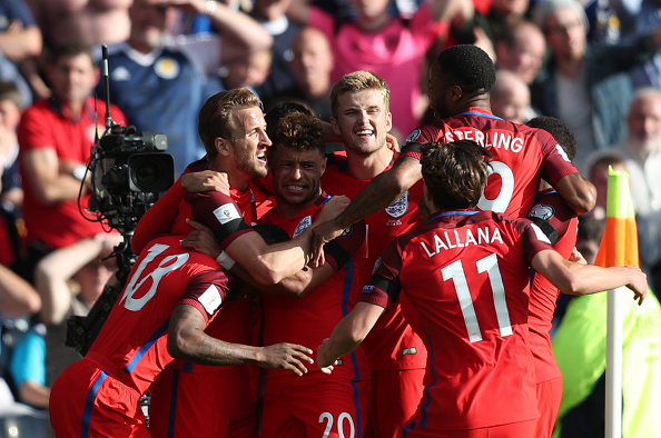 Англия остава на върха в Група F с актив от 14 точки. "Трите лъва" са без загуба вече в 35 квалификационни срещи. Словения е на второ място с 11, а Шотландия остава на четвърта позиция с 8 пункта.
