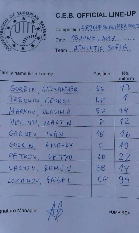 Отчайващо бе представянето на "атлетите" в защита, където филдерите направиха трагичните 9 грешки. В атака най-полезен бе откриващият хитър Александър Горрин, батирал 2 от 3 с двоен хит и 2 RBI. Третата точка в българския актив собственоръчно произведе питчерът Велинов с двоен хит в 3-тия ининг.