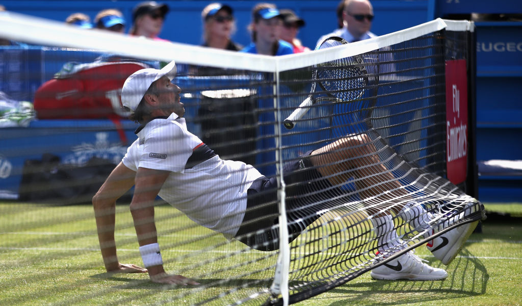 Григор Димитров стигна до обрат срещу Жулиен Бенето и се класира за четвъртфиналите на турнира на трева в Куинс. Шампионът от 2014 г. загуби първия сет, но постигна успех с 4:6, 6:3, 6:4 срещу 35-годишния французин. Българинът ще спори за място на полуфиналите с победителя от двубоя между Танаси Кокинакис и Данил Медведев.