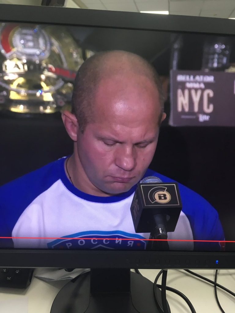 Легендата на ММА в тежка категория Фьодор Емеляненко изглеждаше задремал по време на пресконференцията преди Bellator NYC.