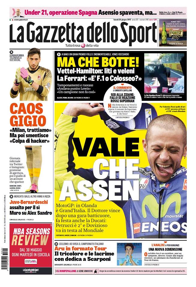 С успеха си Роси стана пилотът с най-дълга победна кариера, като първият му успех в най-ниския клас на MotoGP идва 20 години и 313 дни преди вчерашния. Победата му бе рекордната за холандското състезание десета и 115-а в цялата кариера на Доктора. Още седем победи пък го делят от големия рекорд на Джакомо Агостини и неговите 122 успеха в шампионата.