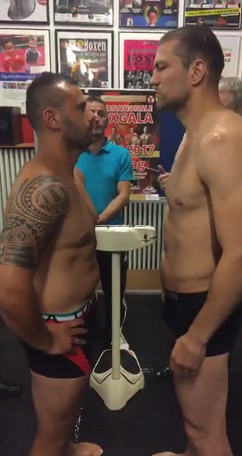 Официалното мерене на кантара бе заснето от брата на Тервел Пулев - Кубрат Пулев и пуснато в профила му във фейсбук.