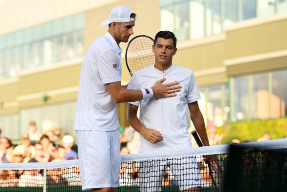 Джон Иснър беше безкомпромисен срещу сънародника си Тейлър Фриц и го елиминира в три сета - 6:4, 7:6, 6:3. Мощният сервис отново беше основното оръжие на американския гигант, който е потенциален съперник на Григор Димитров в третия кръг.