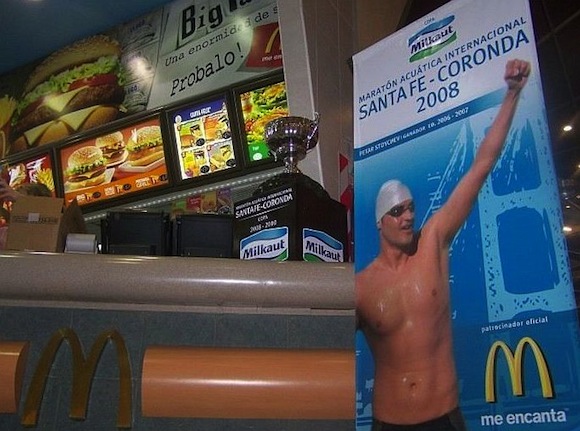 Интересното е, че това не е първият случай, в който името и образът на четирикратния участник на олимпийски игри се използва с комерсиална цел. За стартовете на Световната купа в Аржентина преди 10 години бившият служебен спортен министър приветстваше клиентите на McDonalds.