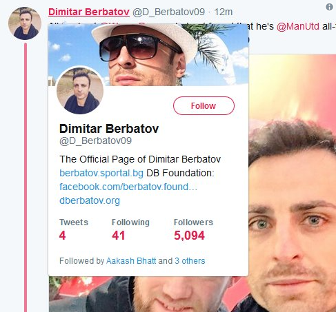Името на Димитър Бербатов бе въвлечено по неочакван начин в дискусиите около евентуалното завръщане на капитана на Манчестър Юнайтед Уейн Рууни в Евертън. В социалната мрежа "Туитър" се появи профил @D_Berbatov09, който много бързо събра над 5 000 последователи. От този акаунт бе пусната публикация, чрез която Бербатов уж потвърждава трансфера на бившия си съотборник и му пожелава всичко най-добро в Евертън. Постът обърка не само последователите на фалшивия профил, но дори някои от медиите на Острова. Впоследствие акаунтът бе блокиран и стана ясно, че "новината" е изфабрикувана.