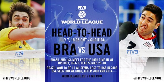 Двата отбора са играли 39 пъти помежду си в Световната лига, като Бразилия има сериозно предимство - 29 срещу 10 победи. "Селесао" са спечелили последните три мача помежду им през 2015 и 2016 година, а последната победа на САЩ е от 2014-а, когато бият на финала във Флоренция с 3:1 гейма.