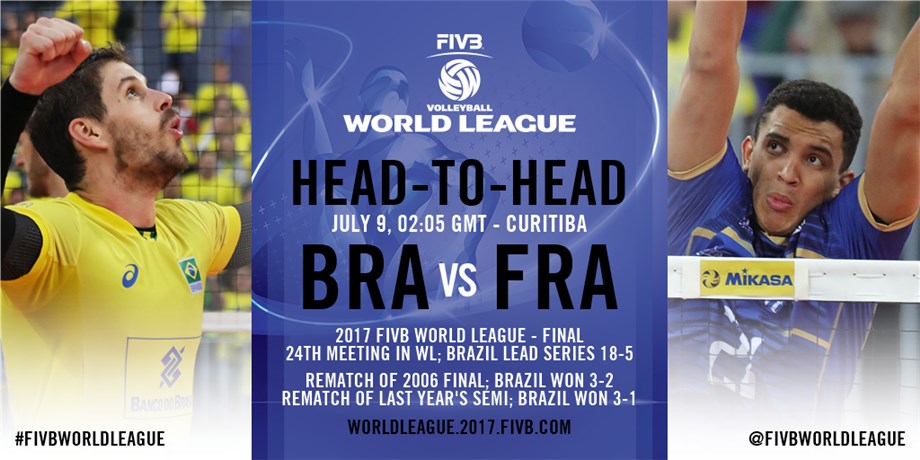 Отборите на Бразилия и Франция за втори път ще се срещнат на финал в Световната лига. В първия сблъсък през 2006 година в Москва “Селесао” спечели драматично финала с 3:2.