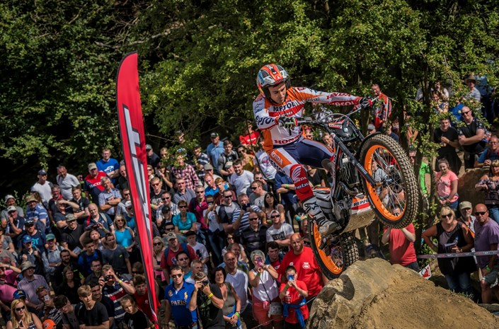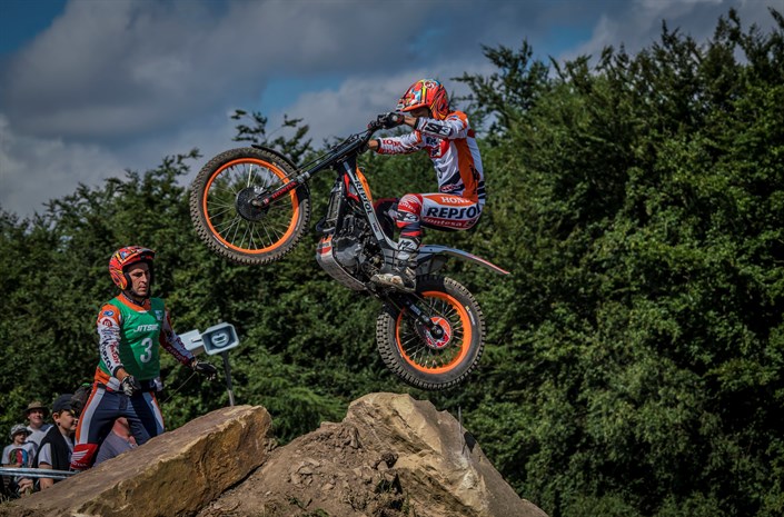 Тони Боу увеличи преднината си в световния шампионат на триал с блестяща победа в Гран При на Великобритания. Неговият съотборник от екипа на Repsol Honda Такахиса Фуджинами асистираше на подиума на Боу. Така отборът на Repsol Honda направи втори дубъл за сезона.