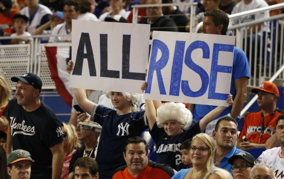 Репликата вече е нещо като запазена марка на ст. "Янки" в Ню Йорк заради едно 25-годишно момче, което прави фурор с раираната униформа на най-титулувания бейзболен клуб в света. Тази нощ Аарън Джъдж (на английски Judge – съдия) добави още величие към славния си дебютен сезон в МЛБ, като стана първият новобранец, спечелил Хоумрън дербито в навечерието на Мача на звездите.