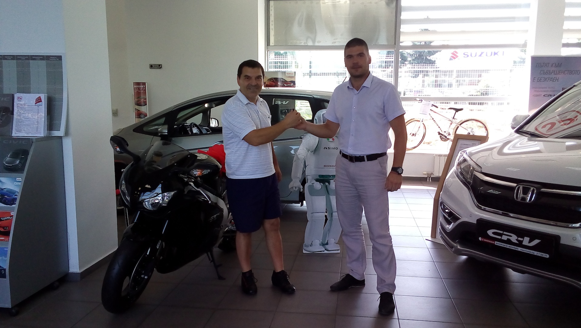 „Смятам да направя бойното кръщение на мотоциклета на Власинското езеро. Избрах този модел заради спортното усещане, което той дава. Редовно следя MOTO GP и гледам състезанията на живо. По Honda ме запали колегата д-р Илиев, той е като жива ваша реклама", сподели с представители на „Бултрако" АД, официален вносител на Honda в България, щастливият Росен.