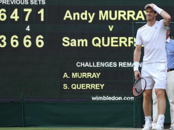 Сам Куери поля със студен дъжд цяла Великобритания, след като изхвърли от "Уимбълдън" световния №1 и двукратен шампион Анди Мъри. Фаворитът на домакините се бореше с травма в бедрото в късните периоди на вчерашния мач и отстъпи с 6:3, 4:6, 7:6(4)1 1:6, 1:6 след 2 часа и 42 минути игра на Централния корт. Така американецът е класира за своя първи полуфинал на турнир от Големия шлем, което бе истински шок както за публиката, така и за самия него.
