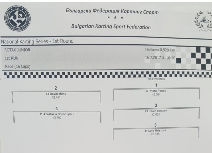Днес на картинг писта Хасково се проведоха свободни тренировки и квалификация от първи кръг на "Национални Картинг Серии", организирани от КК "Кюстендил - 1" и СКК "Хидролифт Рейсинг Тийм" с помощта на Йордан Савов. След преминаване на технически преглед за утрешните състезания всички пилоти, подали заявки в петте класа, бяха допуснати до участие.