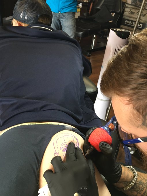 В крайна сметка това се случва и мъжът изпълнява обещаното, като поръчва да му изрисуват лика на футболист на задника. Защо там не става ясно, но може би просто по тялото вече не е имало достатъчно място. В интерес на истината рискунката не се е получила много успешна и мнозина казват, че това по-скоро е Дарън Бент, отколкото новото попълнение на Арсенал.