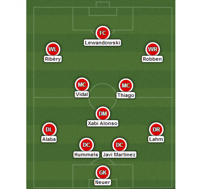 В сравнение с основната 11-орка от миналия сезон тук прави впечатление отпадането на фигури като Лаам, Алонсо и Рибери плюс на Хави Мартинес. Класата ще трябва да бъде заменена от младежка свежест и ентусиазъм.