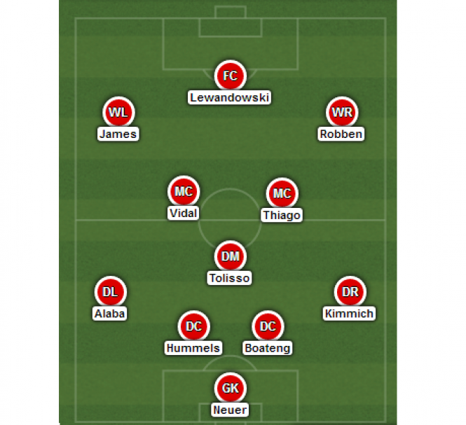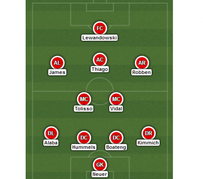 Шампионът на Германия Байерн (Мюнхен) привлече няколко добри попълнения това лято, например Корентен Толисо, но пък и същевременно изгуби две фундаментални фигури като Филип Лаам и Чаби Алонсо, които се оттеглиха от футбола, както и рядък тип остро крило левичар като Дъглас Коща, даден под наем на Ювентус. Други големи загуби за състава обаче не се очакват. Седмици преди старта на надпреварата в Бундеслигата „Франс Футбол” ви представя възможната титулярна единайсеторка на баварците.