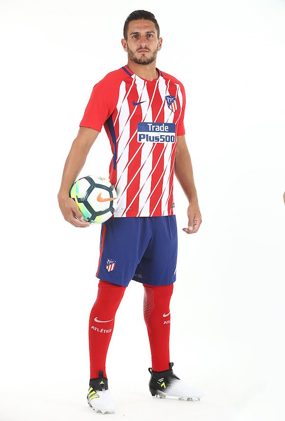 Феновете на Атлетико Мадрид вече могат да се сдобият с новите екипи, с които отборът ще играе през сезон 2017/18. Клубът официално представи екипировката, производство на американския концерн Nike. Титулярните фланелки са в традиционото червено-бяло вертикално райе, но този път е внесен и допълнителен елемент с появата на 10 тънки диагонални линии в бяло на лицевата част.