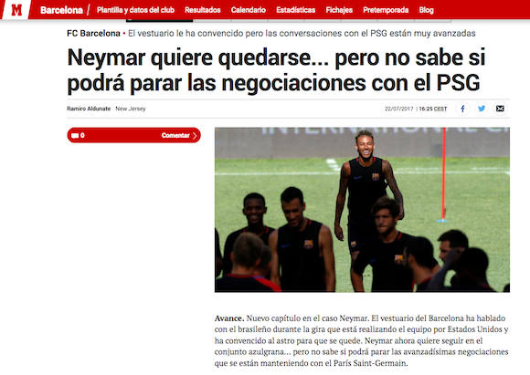Мегазвездата и неговите агенти обаче са в напреднали преговори с Пари Сен Жермен и самият играч не знае дали вече не е твърде късно да обърне монетата. Според Catalunya Radio има вероятност Неймар да е подписал предварително споразумение.