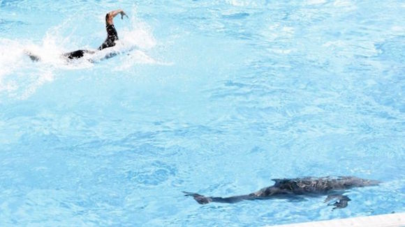 Четирикратният световен шампион и 17-кратен шампион на Европа Филипо Манини се състезава през 2011 г. с двойка делфини в басейн близо до Рим. Но не успя да ги изпревари.