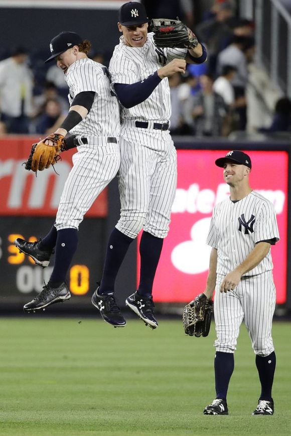 За Янкис като питчер също започна новобранец – Джордан Монтгомъри (W 7-5). За 6 ининга и 2/3 левичарят позволи само 2 хита и 1 точка, а булпенът го подсигури с 2 ининга и 1/3 с още 1 хит и 1 точка. Клоузърът Аролдис Чапман (S 12) затвори бившия си отбор с 1-2-3 в последната защита.