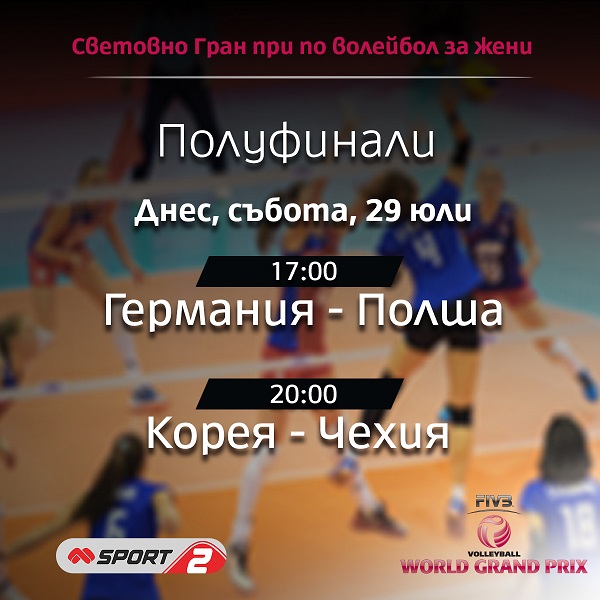 Събота е денят за полуфиналите и на дамското волейболно Grand Prix 2017. Четирите най-добри отбора от Група 2 ще определят този уикенд кой ще бъде шампион, а всички двубои ще бъдат излъчвани директно по Mtel Sport 2. Шампионът в надпреварата ще спечели промоция за Група 1, а началото е в събота с полуфиналните сблъсъци Южна Корея – Германия от 17:00 часа и Чехия – Полша от 20:00 часа. Отборите победители ще се изправят в големия финал в неделя от 19:00 часа, докато загубилите ще играят за утешителното трето място от 16:00 часа.