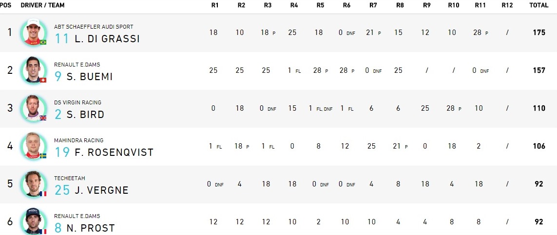 Дори това обаче не бе проблем за федерацията, която след края на състезанието разкри, че състезателният автомобил на Буеми е бил по-лек от минималните 880 кг и главният претендент за титлата бе дисвалифициран от първото състезание в Монреал. Така той за първи път от началото на сезона, който започна в края на 2016-а, загуби лидерската си позиция и изпадна в тази на догонващ с 18 точки.