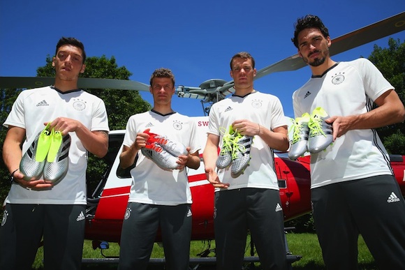 По време на Европейското първенство във Франция Томас Мюлер ще бъде обут с X16+ PURECHAOS. Бастиан Швайнщайгер с X16, плеймейкърът Месут Йозил ще контролира играта с ACE 16+ PURECONTROL, докато Матс Хумелс и Мануел Нойер ще се появят с ACE 16.