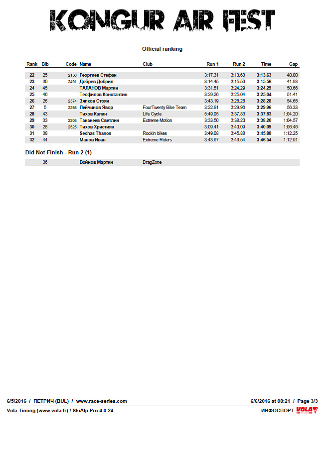 Българските даунхил серии за 2016 г. бяха открити в природен парк Беласица миналия уикенд. Те бяха част от първият фестивал за екстремни спортове Kongur Air Fest. При мъжете на първо място се класира Стивиан Гатев от Bike House Bikes, на второ е Йоанис Йоану oт Bike30 и на трето – Теодор Мавродиев от VIVO.