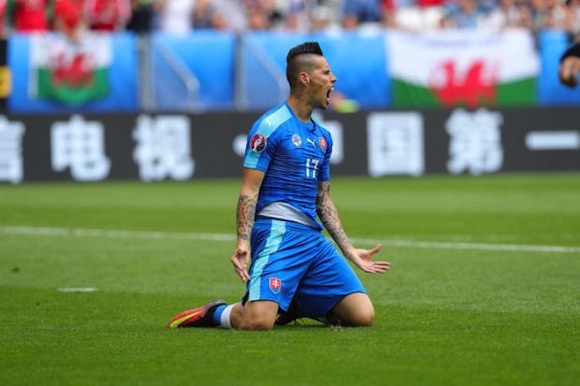 Словакът Марек Хамшик прави впечатление с избръснатата си глава и гребена, който стърчи отгоре. Прическата обаче очевидно му носи късмет, след като той отбеляза великолепен гол срещу Русия.