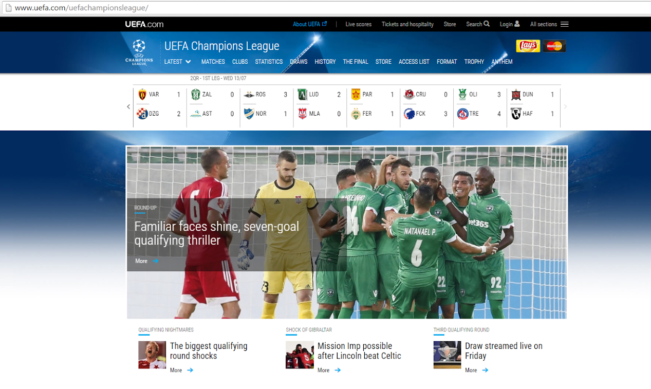 Водещата новина и основна снимка в официалната страница на УЕФА Шампионска лига отново беше Лудогорец.