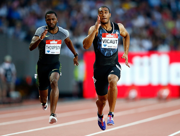 В спринта на 100 м при мъжете се наложи французинът Джими Вико с 10.02 сек (+0.4 м/сек), следван от американеца Айзая Йънг с 10.07 сек и от европървенеца Чуранди Мартина (Холандия) с 10.10 сек.