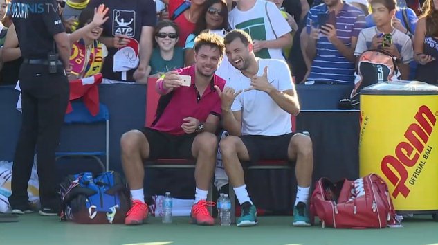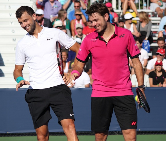 Григор Димитров и Стан Вавринка се наслаждават на партньорството си на Rogers Cup в Торонто. Двамата се включиха в турнира на двойки, като в първия кръг миналата нощ постигнаха победа срещу Доминик Тийм и Лука Пуи с 4:6, 7:6(2), 12-10.