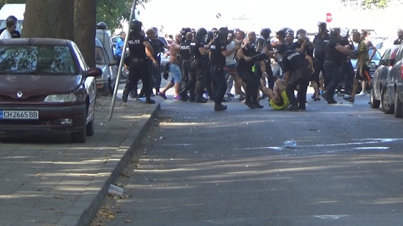 Меле между фенове на Ботев Пд и полицията в Бургас (видео+снимки)
