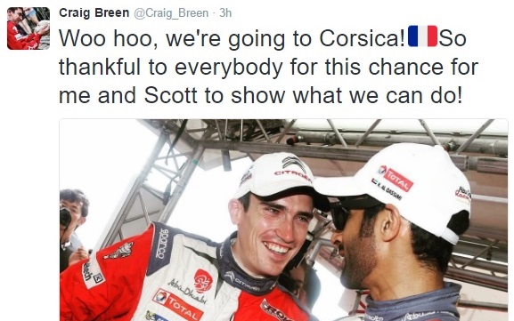 За Мийк това ще бъде четвъртата поява на ралито, което се провежда на френския остров Корсика, а най-доброто му представяне е четвъртото място от миналия сезон. Брийн изрази и благодарността си в социалната мрежа Twitter за възможността, която Citroen предоставя на него и навигатора Мартин Скот. Той ще направи загрявка за рали Корсика с участието си в британското рали първенство в средата на месеца.