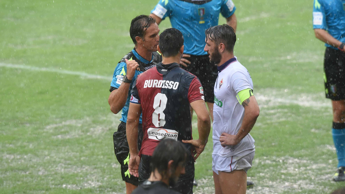Двубоят между Дженоа и Фиорентина от третия кръг на Серия "А" бе прекратен в 28-ата минута. Причината за това решение на съдията Лука Банти е лошото време и силната градушка, която се изля върху "Луиджи Ферарис". Първоначално реферът прекрати мача за 20 минути след разговор с двамата капитани, но след като лошото време не отмина, Банти официално даде край на срещата. Все още не е ясно кога двубоят ще бъде преигран.