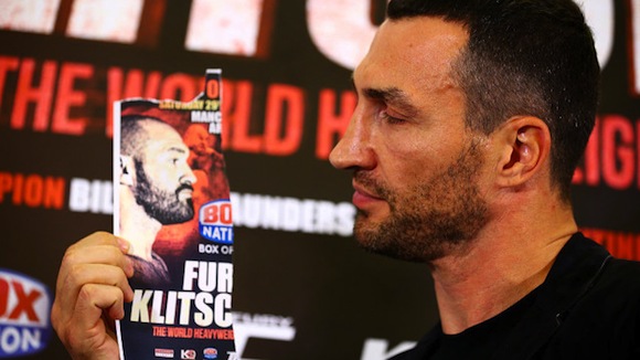 Така бившият световен шампион в тежка категория Кличко бе принуден да говори сам пред медиите. Украинецът прие случващото се на шега и накрая дори позира със снимката на съперника си. Тайсън Фюри не е фаворит да спечели боя според Sportingbet с коефициент 1.90. Шансът Владимир Кличко да победи е оценен също на 1.90. Възможността двубоят да завърши наравно е оценена на 23.00.