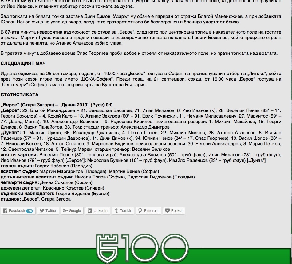 В репортажа за домакинския двубой от 7-ия кръг на Берое срещу Дунав (0:0), официалният сайт на заралии завършва със следната информация: