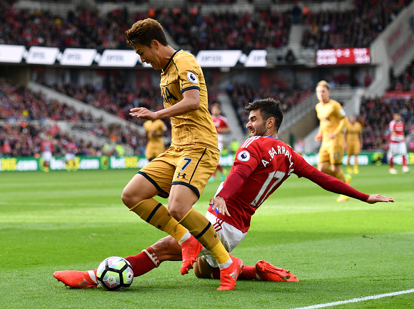 Отборът на Тотнъм победи с 2:1 Мидълзбро като гост на "Ривърсайд" в мач от 6-ия кръг на английската Висша лига. И двата гола за "шпорите" от Лондон вкара южнокореецът Сон Хюн-Мин (7, 23). За Боро точен бе Бен Гибсън (65). Тимът на Маурисио Почетино продължава без поражение в Премиър Лийг, като е втори в класирането с 14 точки и само 3 допуснати във вратата си гола. Воденият от Айтор Каранка Мидълзбро пък е 15-и с 5. Лидер е безгрешният дотук Манчестър Сити с пълен актив от 18 точки.