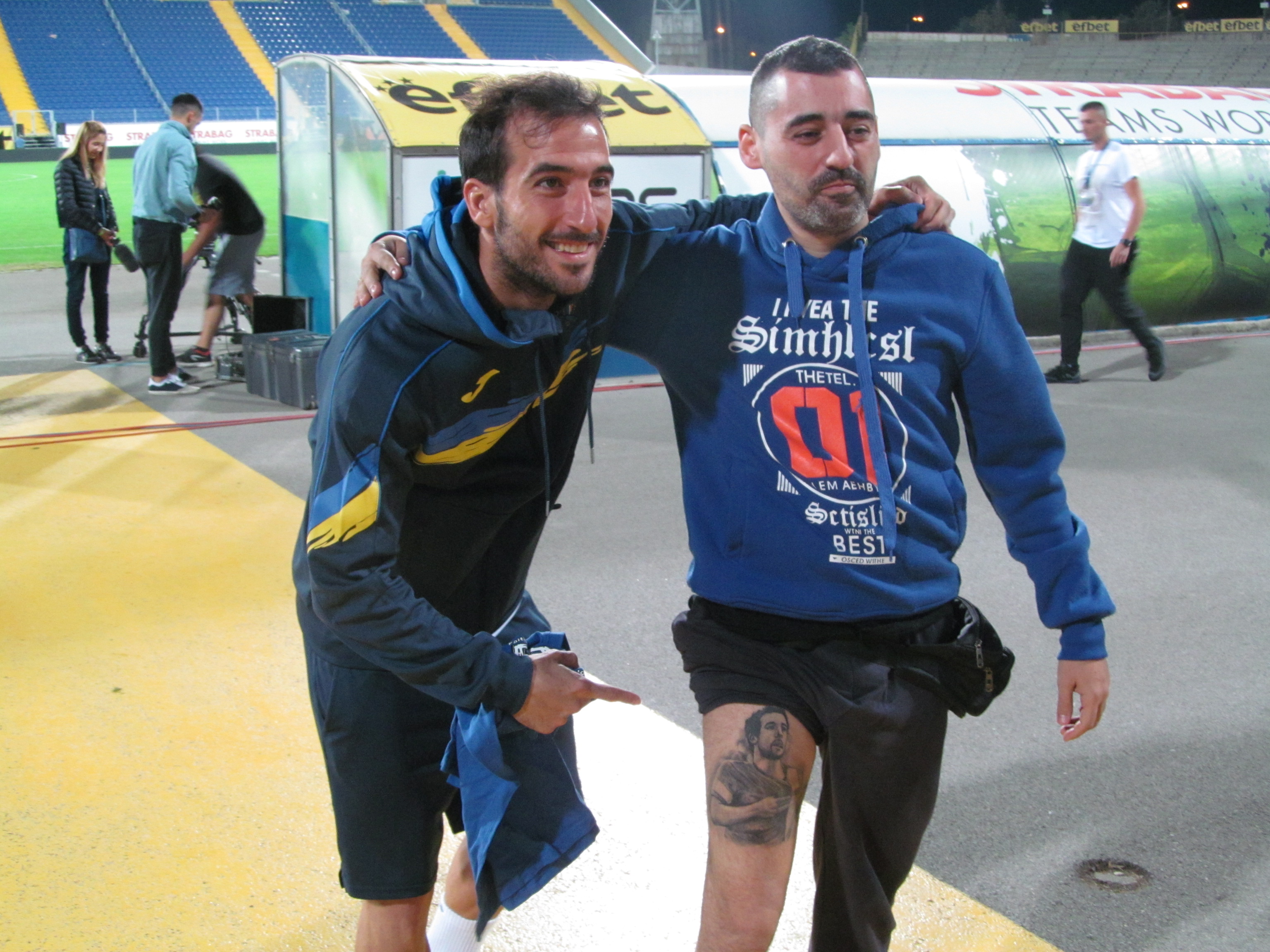 Малко след края на срещата представители на двата футболни клуба - „Дунав“ и „Левски“ доказаха от своя страна, че знаят кое е най-важното нещо във футбола и са обърнати с мисъл към феновете. Те съдействаха да се осъществи срещата на момчетата от Волос с испанеца. Наред с емоционалните разговори, двете страни си размениха и подаръци. Аниете получи специална фенска тениска на „Ники“. Той пък дари Василис с фланелката си, с която изигра мача срещу „Дунав“. Изборът му на кого да я даде не бе никак случаен, тъй като се оказа, че неговият лик „грее“ от татуировка на крака на доскорошния шеф на „Blue Angels”.
