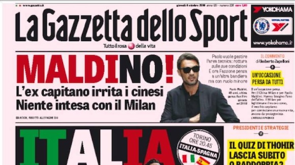 Пропадна и този опит за завръщането на Паоло Малдини в Милан, но като ръководител. Легендата на клуба беше получил предложение да работи като технически директор, но отговорът му е "не", съобщава на първа страница Gazzetta dello Sport в днешния си брой.