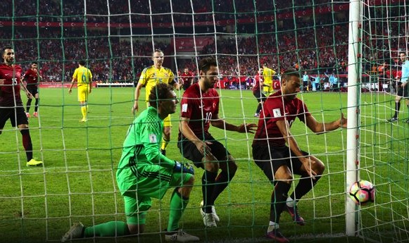 Турците върнаха едно попадение в 45-ата минута, когато Озан Туфан засече с глава центриране от корнер и не остави шансове на Андрий Пятов.