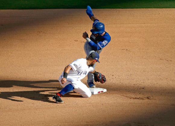 Късно снощи пък Торонто удари сериозно по амбициите на Тексас, при това насред ст. "Глоуб Лайф Парк" в Арлингтън. Марко Естрада (W 1-0) стана първият питчер в историята на канадския клуб, останал на възвишението до 9-ия ининг в мач от плейофите. Мексиканецът хвърля 8 ининга и 1/3 и даде само 4 хита, допускайки почетната точка на домакините в последната част при аут по земя срещу Чоо Шин-Соо.