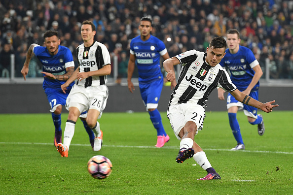 Шампионът Ювентус записа труден успех с 2:1 в домакинството си на Удинезе от 8-ия кръг в Серия "А". "Бианконерите" трябваше да направят пълен обрат след като първи получиха гол в своята врата. Якуб Янкто бе точен в 30-ата минута и смълча триубните. Пауло Дибала обаче се превърна в герой за домакините, като реализира две попадения в 43-ата и 51-ата минута от дузпа и така донесе четвърта поредна победа на своя тим.